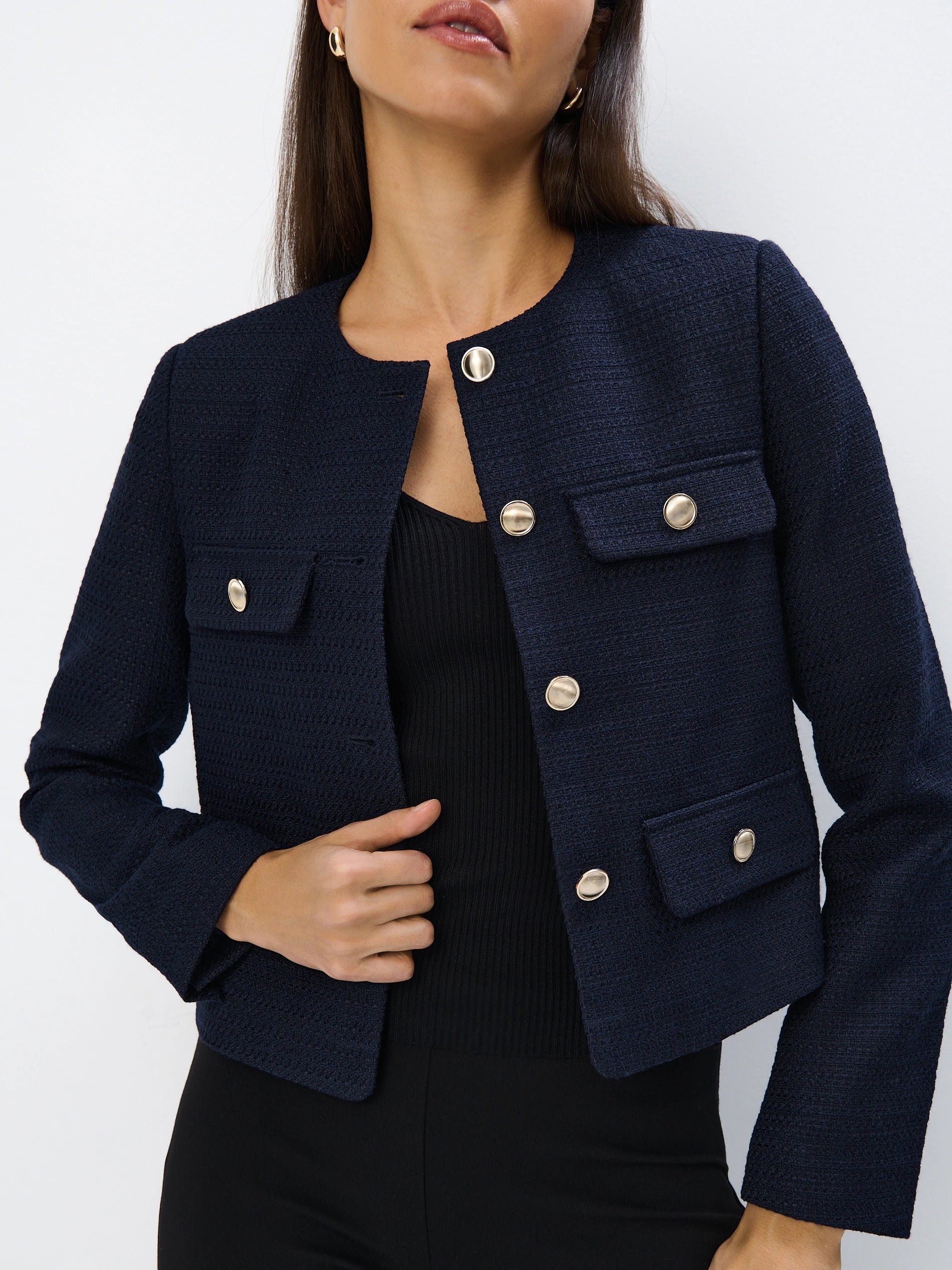 Elevate your wardrobe with this sophisticated Mohito Blazer Jacket, a timeless piece designed for the discerning professional. Crafted with precision tailoring, this blazer delivers a polished silhouette that transitions seamlessly from office to evening occasions. The structured fit and refined details ensure you maintain an authoritative presence in any setting. Perfect for layering over dresses or pairing with tailored trousers, this jacket combines versatility with understated elegance. An essential investment for those who appreciate quality craftsmanship and enduring style.
