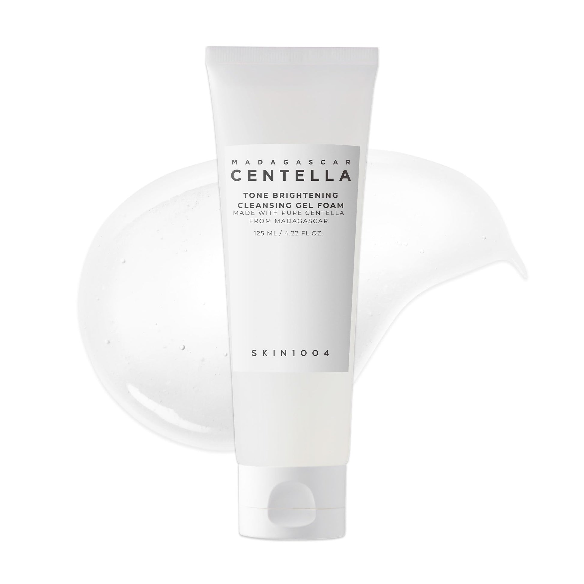 المنتج الموضح في الصورة هو جل منظف ومفتح للبشرة من "SKIN1004 Madagascar Centella Tone Brightening Cleansing Gel Foam".